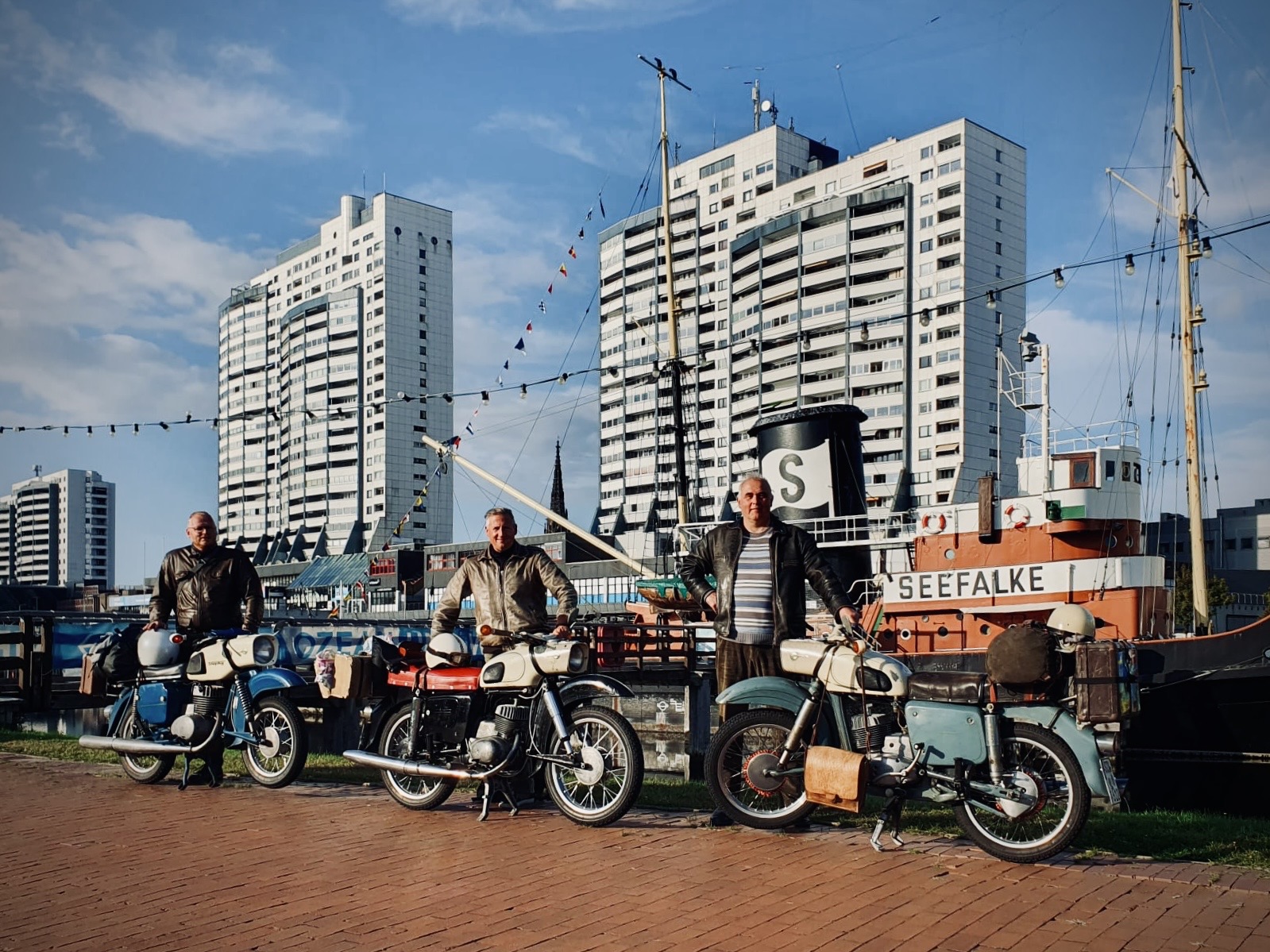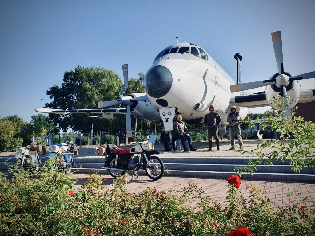 Anschließend umrunden wir den Jadebusen, durchfahren den Wesertunnel – auf alten Maschinen ein durchaus mulmiges Erlebnis – und verlassen kurz darauf wieder die Bundesstraße. Über dünn besiedeltes Gebiet erreichen wir Bremerhaven, machen noch einen Abstecher zum Freilichtbereich des Deutschen Schifffahrtsmuseums und beziehen unsere Unterkunft in der Stadt. Der Abend endet, wie er begonnen hat: gemeinsam, diesmal in einem griechischen Restaurant.