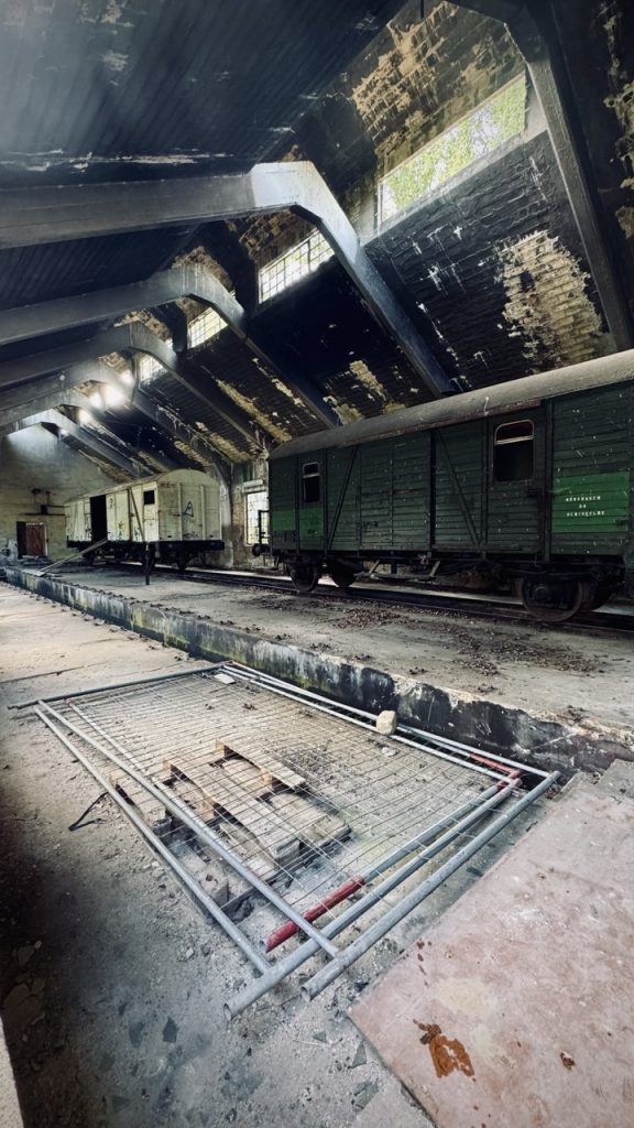 Gegen 9:00 Uhr setzt sich die Gruppe in Bewegung. Bereits eine halbe Stunde später erreichen wir den ersten Zwischenstopp: den verlassenen Bahnhof in Kalbe (Milde). Einst ein wichtiger Knotenpunkt der altmärkischen Kleinbahn, ist er heute Ruine und Zeitzeuge zugleich. Bröckelnder Putz, leere Fenster, viel Geschichte. Wir inspizieren die zugänglichen Bereiche dieses Lost Places gründlich, dann geht es weiter – konsequent nach Westen.