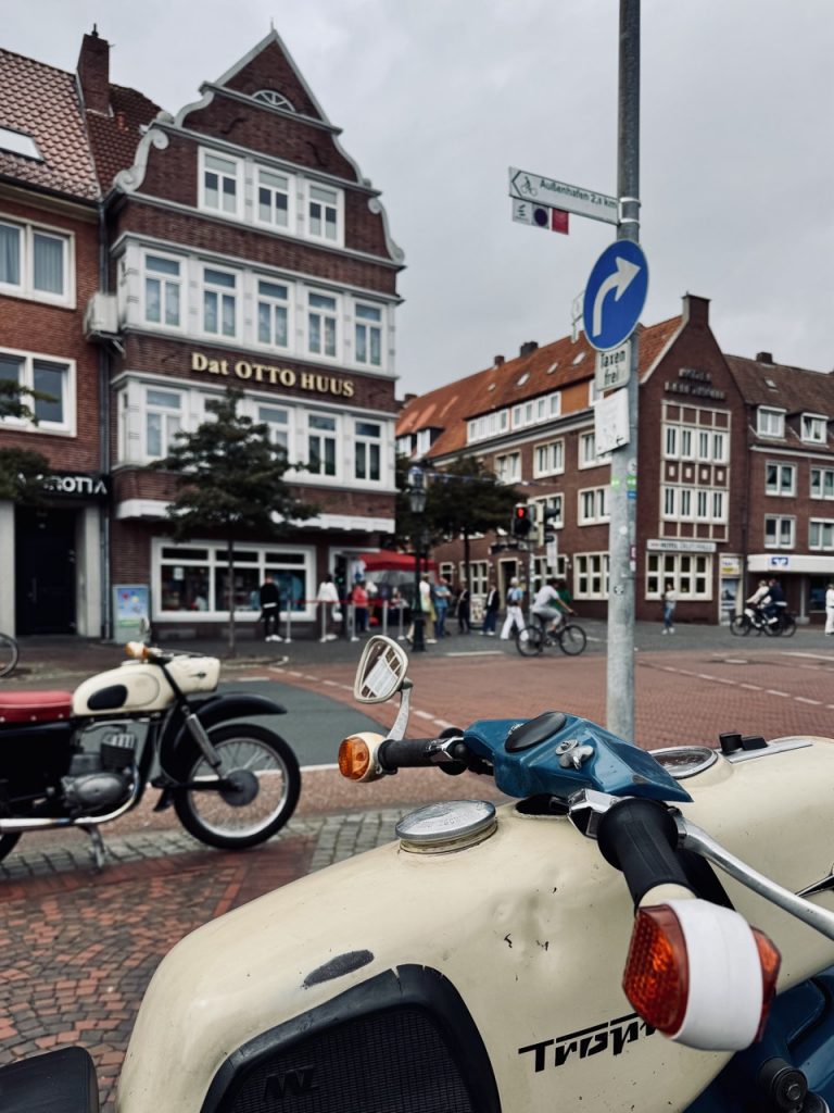 Die erste Etappe von Wirdum nach Norden bestätigt die Entscheidung. Nach etwa 30 Kilometern erreichen wir das Auto- und Spielzeugmuseum Norden. Drinnen erwartet uns eine ebenso interessante wie stellenweise skurrile Sammlung. Im Gespräch mit einem Museumsmitarbeiter – deutlich jenseits der 80 – erfahren wir viel über die Ausstellung. Und wir merken: Über MZ weiß man hier im Westen erstaunlich wenig. Trotzdem ließ sich das eine oder andere Ost-Exponat entdecken.