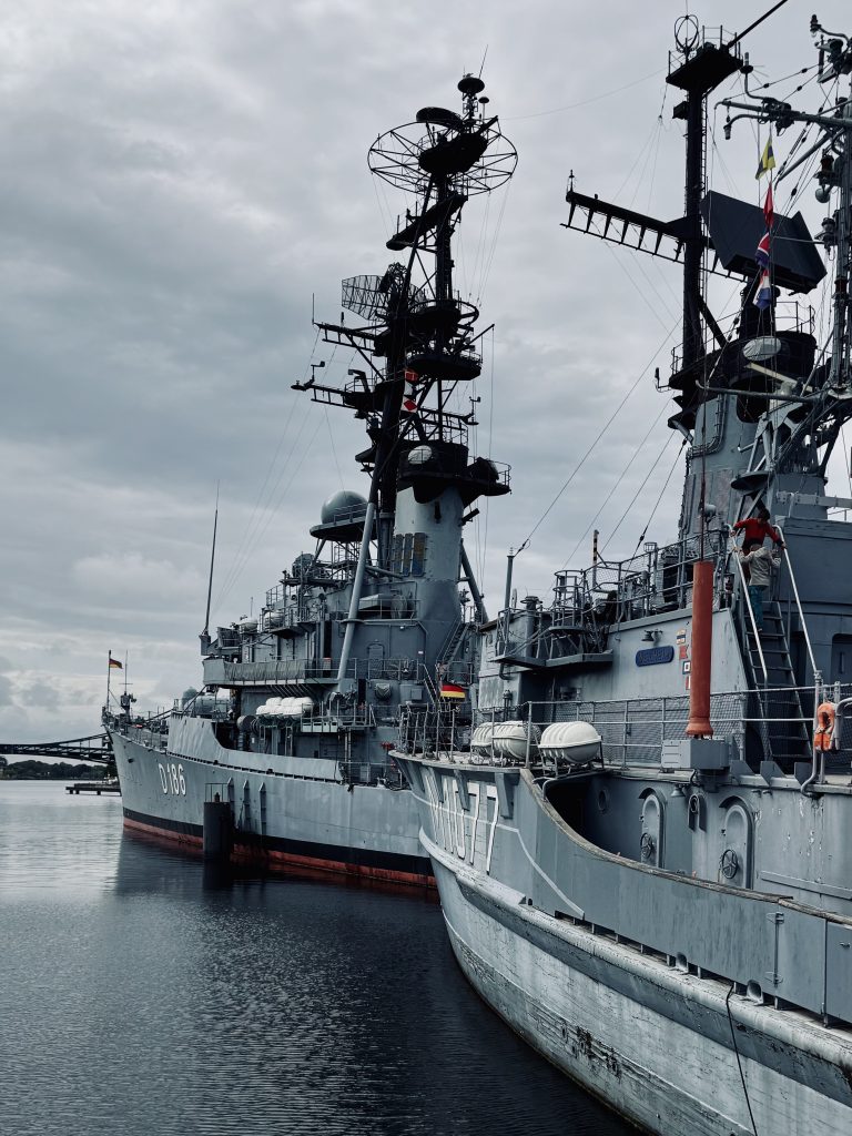Der Regen lässt nach, die Regenkombis bleiben im Gepäck. Entlang der Nordseeküste, vorbei an Bensersiel, Neuharlingersiel und Harlesiel, erreichen wir Wilhelmshaven. Im Deutschen Marinemuseum tauchen wir in die Geschichte der deutschen Marine ein und klettern über den Zerstörer Mölders.